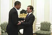 The American National Exhibition became the first of a series of traveling exhibitions from the U.S. Embassy in Moscow that continued for the next five decades to the early 1990s.[33] In total, there were 87 separate showings of 19 exhibitions in 25 different cities, across 12 time zones, exhibiting American technology, from graphic arts to agriculture, outdoor recreation to medicine.[33][34] The 50th anniversary conference of the National American Exhibition was celebrated "a day after U.S. President Barack Obama was in Russia to try to kick-start relations. With ties between Washington and Moscow at Cold War lows again, there was heavy nostalgia for the heady days of detente."[35]