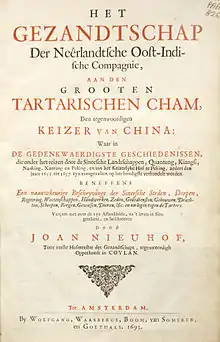 An embassy from the East-India Company of the United Provinces is a book written by Dutch author and explorer Johan Nieuhof. The book served as a major influence in the rise of chinoiserie in the early eighteenth century.[1]