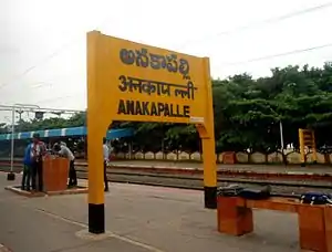 Anakapalle railway station (Station CODE: AKP)[1] is a railway station in Anakapalle, a neighbourhood of Visakhapatnam city, Anakapalli district in Andhra Pradesh. It lies on the Vijayawada–Chennai section and is administered under Vijayawada railway division of South Coast Railway zone (formerly South Central Railway zone).[2]
