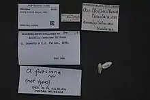 - ↑ Kilburn R.N. (1981). Revision of the genus Ancilla, Lamarck, 1799. Ann. Natal Mus. 24(2). World Register of Marine Species, Retrieved 28 April 2010.