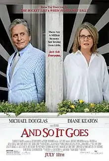 And So It Goes is a 2014 American comedy drama film directed by Rob Reiner and written by Mark Andrus. The film, which stars Michael Douglas, Diane Keaton and Sterling Jerins, was released on July 25, 2014. It received mostly negative reviews from critics, and performed modestly at the box office. The film was the second collaboration between Reiner and Douglas, after The American President (1995). This film was also Frances Sternhagen's final feature film role before her death on November 27, 2023.[4]