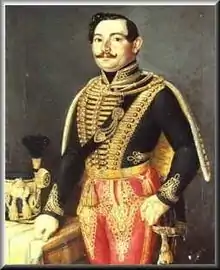 From September 1848 he participated in the fights against Josip Jelačić. From 8 (16) October he was major, division commander in the regiments which joined the Hungarian side. From 26 November 1848 he was the commander of the IX. Hussar Regiment. From 5 January 1849 he was brigadier, from 18 February commander of a division in the Army of the Northern Danube led by Artúr Görgei. For his victory in the Battle of Hatvan, he received the title of general and the III. Class Hungarian Military Decoration.[1] His decision to not attack with his army corps the Austrians in the Battle of Isaszeg, was considered a big mistake, which could be brought the destruction of the united Habsburg forces in Hungary under the lead of Marshall Alfred I, Prince of Windisch-Grätz.[2] He took an important role in the victory in the Battle of Nagysalló. But being against the Hungarian Declaration of Independence of 14 April 1849, he asked to go in permission, and never came back in the Hungarian army.