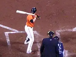 Torres signed with the San Francisco Giants on January 9, 2009.[24] After a strong spring training, he was named to the Giants' Opening Day roster as a reserve outfielder.[32][33] Except for a minor league rehab assignment, he spent the entire year in the majors. He was placed on the disabled list on April 27 with a strained left hamstring.[34] After a rehab assignment, he was activated on May 26.[35] On June, 15 he hit the 48th "Splash Hit" home run at AT&T Park, against John Lackey in a 97 loss to the Los Angeles Angels of Anaheim.[36] He was again placed on the disabled list on July 31 with the same injury he suffered earlier in the year; he was out until September 1.[5][37] On September 20, he hit two home runs against Randy Wolf in a 62 loss to the Los Angeles Dodgers.[38] He finished the year with a career high .270 batting average and tied for eighth (along with Craig Counsell, Gerardo Parra, Everth Cabrera, and Juan Pierre) in the National League (NL) with eight triples despite only playing 75 games.[5]