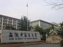 Anhui University of Chinese Medicine (AHUTCM, simplified Chinese: 安徽中医药大学; traditional Chinese: 安徽中醫藥大學; pinyin: Ānhuī Zhōngyīyào Dàxué) is a comprehensive public university based in Hefei, Anhui province, China. The university provides programmes in traditional Chinese medicine as well as in the fields of technology, engineering, management and economics.[1]