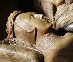 Effigy of Anne Hastings on the Talbot monument in Shrewsbury Chapel, Sheffield Cathedral. She is on the right side of her husband, and the latter's second wife is on his left