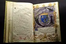 This work, produced probably before 1525, is the major reason for Anne de Graville's inclusion in the history of French literature.[9] The collection of seventy-one rondeaux were revised from the poem originally written by Alain Chartier in 1425, updating the narrative and neutral octosyllabic form of Alain’s poem to a lyrical and courtly form of rondeaux.[10] The text of the poems are preserved in a single manuscript housed at the French National Library (Bibliothèque nationale de France) in Paris with the shelf mark of français 2253. The dialogue between Lover and Lady reflects a softening of the attitude of the Lady toward her pleading courtier, rendering it more acceptable to a Renaissance audience.[10] A modern edition was published by Carl Wahlund in 1897.[11]