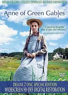 Anne of Green Gables is a 1985 Canadian made-for-television drama film based on the 1908 novel of the same name by Canadian author Lucy Maud Montgomery, and is the first in a series of four films. The film stars Megan Follows in the title role of Anne Shirley and was produced and directed by Kevin Sullivan for the Canadian Broadcasting Corporation. It was released theatrically in Iran, Israel, Europe, and Japan.