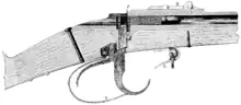 About the same time he developed a pinfire falling-block breech-loading carbine (mousqueton) for the Cent-gardes Squadron which was a bit ahead of its time in using a metallic cartridge and is very unusual (for a single-shot weapon) in that it fires from an open bolt.[4]