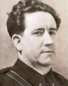 After the military revolt of July 1936 Mije was at first assigned to represent the PCE in the War Ministry, assigned the rank of colonel.[4] In November 1936, the government evacuated to Valencia. The Political Bureau of the PCE remained in Madrid, unlike the leaders of the other parties. Pedro Checa and Antonio Mije negotiated with General José Miaja for participation of the Communists in the Madrid Defense Council (Junta de Defensa de Madrid). The communists were given three ministries, War, Supplies and Public Order, which were led by Antonio Mije, Pablo Yagüe and Santiago Carrillo, respectively.[5] The Defense Council was restructured and renamed the Junta Delegada de Defensa de Madrid, or the Delegate Defense Council of Madrid, to comply with an order of 25 November 1936 by President Francisco Largo Caballero. This was to affirm that the council was subordinate to the government.[6] Mije was replaced by Isidoro Diéguez as Militias delegate.[7]