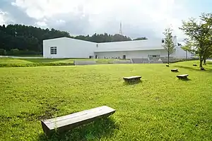 The Aomori Museum of Art (青森県立美術館, Aomori Kenritsu Bijutsukan) is a museum in Aomori, Japan, opened in July 2006. It is located near Sannai-Maruyama Site,[1] which the museum's design takes inspiration from in its partially-buried structure.[2] The museum houses more than 120 works from drawings to three-dimensional works by Yoshitomo Nara, a young artist from Aomori Prefecture.[3] The museum is also active in having concerts, plays, and workshops. Since opening in 2006, the Aomori Museum of Art with its goal of introducing the arts of Aomori to the world has collected and exhibited works from Aomori native artists such as Shiko Munakata, Shuji Terayama, Yoshitomo Nara, and Tohl Narita. The Aomori Dog by Yoshimoto Nara has become the museum's iconic symbol.[4]