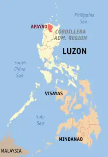 Apayao's at-large congressional district refers to the lone congressional district of the Philippines in the province of Apayao. It has been represented in the House of Representatives of the Philippines since 1998. It was previously included in Kalinga-Apayao's at-large congressional district from 1969 to 1998. The district is currently represented in the 19th Congress by Eleonor Bulut Begtang of the Nationalist People's Coalition (NPC).[3]