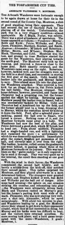 - ↑ "Arbroath Wanderers v Montrose". Arbroath Herald: 7. 5 December 1895.