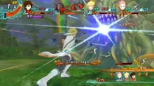 The battle design was led by Osamu Hisano.[22] The programmer was Takashi Kawamoto, who would later work as a battle designer on Final Fantasy XIV: Shadowbringers.[22][24] While the team overall wanted something new and innovative, being another area where they felt the video game industry was being slow to change, they also kept many traditional elements in the gameplay so as not to alienate genre fans.[25] The gameplay design drew a lot of inspiration from Tales of Symphonia, which many staff members had fond memories of working on.[3] The controls were designed to be traditional rather than relying on the console's motion controls, allowing for long play sessions.[12] The combat system was created around the concept of what Mikage called "link-up combat". The three-person party was considered the best balance, allowing the mechanics and AI to work the smoothest.[3] The team wanted to keep the battles as low-stress as possible, though flashy animations and special attack cutscenes were added at Marvelous's request.[20] The large overworld was planned from an early stage at Kanemaru's insistence, contrasting against selectable self-contained locations on other Wii RPGs.[3] Adjustments to the gameplay were happening late into development, with Mikage focusing on making the battle system as fast and enjoyable as possible within the turn-based system they chose.[15] Keeping loading times as short as possible was also a consideration.[19]
