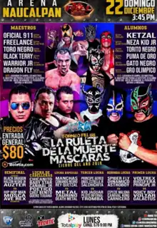 The Mexican professional wrestling promotion International Wrestling Revolution Group (IWRG; Sometimes referred to as Grupo Internacional Revolución in Mexico) produced and scripted a La Ruleta de la Muerte Máscaras (Spanish for "Roulette of Death of masks") tournament on December 22, 2018. The show took place in Arena Naucalpan, in Naucalpan, State of Mexico, Mexico, IWRG's main venue and the site of the majority of all their major shows and tournaments, and also served as the celebration of the 42nd anniversary of Arena Naucalpan.