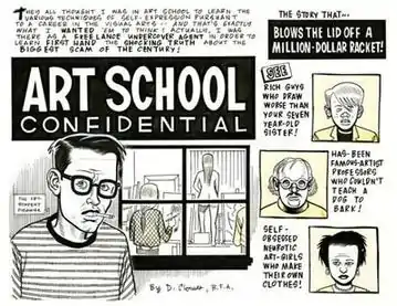 "Art School Confidential" is a four-page black-and-white comic by Daniel Clowes. It originally appeared in issue #7 (November 1991) of Clowes' comic book Eightball and was later reprinted in the book collections Orgy Bound and Twentieth Century Eightball. It inspired the 2006 film of the same name. A color version of the comic was included in the published version of Clowes' original screenplay for the film.