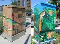 • Throughout various parts of the city, electrical boxes are painted as a beautification of the city. There are 190 large, dull grey electrical boxes which sit on street corners all over town. In 1993, the Springdale Neighborhood Association commissioned a local artist to paint the boxes in the section of town to "brighten" up the eyesores. The trend caught on and now over 100 boxes have been painted by various painters and artists throughout much of the city.
