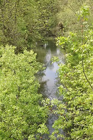 None of the three forks has a named tributary.[4] Before alterations by settlers in the 19th century, the basin was a "boggy, 'braided' marsh with many small creeks spilling into Ash Creek" and the river. European-Americans drained and leveled wetlands and riparian zones for farming, logging, housing, and urban development.[3]