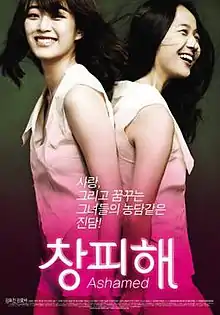Ashamed (Korean: 창피해; RR: Changpihae), also known under the international title Life Is Peachy, is a South Korean queer film written and directed by Kim Soo-hyeon. This is Kim's second feature film after 2004's So Cute. Ashamed was released in theaters on December 8, 2011, but had already been making the rounds on the festival circuit. The film had its world premiere in the New Currents section at the 15th Busan International Film Festival[2][3] and screened in the Panorama section at the 61st Berlin International Film Festival.[4][5]