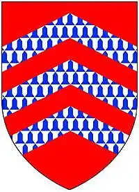 Arms of Turville of Aston Flamville: Gules, three chevronels vair. As depicted on the mural monument of Richard Berrie Esq. (d.1645), lord of manor of Berrynarbor, Devon, in Berrynarbor Church. His second wife was Dorothy Turville, daughter of George Turville of Aston Flamville