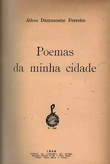 Athos Damasceno Ferreira (Porto Alegre, September 3, 1902 – Porto Alegre, April 14, 1975) was a Brazilian poet, novelist, chronicler, translator, journalist, literary critic, and historian. He is considered the most important historian and chronicler of the city of Porto Alegre, is the founder of art historiography in the state of Rio Grande do Sul, and left a major contribution to the state historiography in the fields of culture and society, being a pioneer in the study of several themes. He was an advocate of the revaluation of regionalisms and a renowned poet and novelist, although being little remembered in this area.