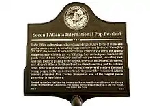 On September 15, 2012, a ceremony was held near the site of the second festival to unveil and dedicate an official historical marker commemorating the event. The marker text reads: "In the 1960s, as American culture changed rapidly, new forms of music and performance emerged, including large outdoor rock festivals. From July 3–5, 1970, the Second Atlanta International Pop Festival, one of the largest such events anywhere in the world during that era, took place in a field 600 yards west of here. Over thirty musical acts performed, including rock icon Jimi Hendrix playing to the largest American audience of his career, and Macon's Allman Brothers Band on their launching pad to national fame. Officials estimated that the festival drew several hundred thousand young people to Byron that weekend. Organized by renowned Atlanta concert promoter Alex Cooley, it remains one of the largest public gatherings in state history."[37] Official sponsors of the marker were the Georgia Historical Society, the Byron Area Historical Society, the Georgia Allman Brothers Band Association, The Allman Brothers Band Museum at the Big House, and Hittin' the Note. The marker dedication ceremony was hosted by festival site landowner Tim Thornton, and featured Cooley, Byron Mayor Larry Collins, officials of the sponsoring organizations, and a crowd of festival attendees and fans.[37]