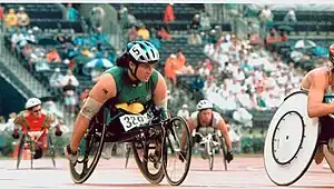 Louise Sauvage, from Perth, won gold in the Women's 1,500 m T52-53 (time of 3:30.45, a world record), gold in the Women's 400 m T53, with a result of 54.96, a Paralympic record, gold in the Women's 5,000 m T52-53 time of 12:40.71, a world record, and a final gold in the Women's 800 m T53 (time of 1:52.80, a Paralympic record).[14] Louise's world record in the 1500 m took 6 seconds off the previous record, and her record in the 5000 m took place only an hour after winning the 400 m.[2]