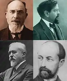Erik Satie (top left) and the dedicatees of Avant-dernières pensées: Claude Debussy (top right), Paul Dukas (bottom left), and Albert Roussel.
