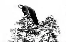 Nilsson making a record jump of 41,5 metres in Saltsjöbaden.