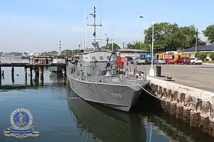 The ships of her class were built to the standards of the United States Coast Guard, with an aluminum hull and superstructure.[1] In addition, a 4-meter (13 ft) rigid inflatable boat powered by a 40-hp outboard motor is stowed amidships.[2] She has a complement of 12. The ship is equipped with a Raytheon AN/SPS-64(V)11 Navigation/Surface Search Radar, but with a smaller antenna as those used in bigger Philippine Navy ships.[2][5] Like all other Philippine Navy ships, the entire class was installed with the Philippine Navy Vessel Tracking System (VTS) by the Naval Sea Systems Command.[6]