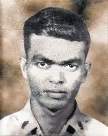 Private First Class Nestor F. Acero, PN (Marines) was an enlisted Marine of the Philippine Marine Corps and a recipient the Philippines' highest military award for courage, the Medal of Valor.[5] Acero was assigned as rifleman in the 7th Marine Company in Jolo, Sulu on 26–27 November 1972 when his company along with the 8th Marine Company assaulted a hill defended by approximately 500 Moro rebels. The marines encountered heavy resistance and took casualties. A withdrawal was eventually ordered from Battalion level. Acero however, was nursing a wounded comrade and elected to cover the withdrawal of the rest of his unit. He was killed in action.