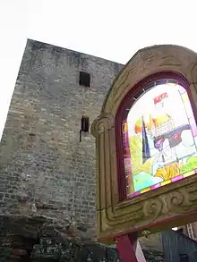 • The Tower of Voués was the keep of the castle built in 1305 by Count Henry I to protect the serfs' houses. It measures 11.70 m in the North by 14.70 m in the East and its height is approximately 30 m. It was sold in 1332 by Henry III to Adhémar de Monteil (Bishop of Metz) who built a castle around which Baccarat would be built. The castle was demolished in the middle of the 17th century by Charles IV, Duke of Lorraine.