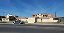 In 1889, the current railroad station was constructed. The station was originally built in the Richardsonian Romanesque style. It contained both a train station and a hotel. One of the station's most defining features was the long arcade, that stretched along the entire north side, connecting the station and the hotel.[3] That same year, the Bakersfield and Kern Electric Railway moved its main line (called the Santa Fe and Southern Pacific Line) to the Santa Fe Bakersfield Station.[2]