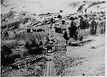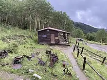 Baldy Town, New Mexico is a former mining town in the Baldy Mining District in Colfax County, New Mexico. Baldy Town was established in 1868, to service mining prospects on the East side of Baldy Mountain, notably the Aztec Mine. After Baldy Town's initial high profit boom from 1868 to 1870, Baldy Town suffered a series of booms and busts as investors and prospectors searched for profitable lodes. The town was originally a conglomerate of miner's homes and services in Ute Meadow. Then in 1886, Baldy Town's core was moved to a strip of services just above the Aztec Mill. The new town grew to accommodate hundreds of residents with a store, stables, saloons, boarding houses, a church, small school, and post office.[1][2] In 1895, at the height of its population, Baldy Town was home to around 1,000 residents. Multiple ambitious and extensive expeditions were made from 1870 to 1936 to discover additional gold veins, but only a select few found substantial lodes.[1] By 1941, Baldy Town had been deserted and a majority of its infrastructure sold.[2] In 1963, the eastern half of Baldy Mountain, including former Baldy Town, was donated to the Boy Scouts of America by Norton Clapp. Today, Baldy Town operates as a staffed camp at Philmont Scout Ranch providing a living history program regarding mining as well as logistical support like food resupply for hikers[3]
