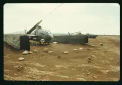 In 1975 Phung Duc Airfield was the base camp of the Army of the Republic of Vietnam (ARVN) 44th and 53rd Regiments. In the early morning of 10 March 1975 at the start of the Battle of Ban Me Thuot, the base was attacked by two People's Army of Vietnam (PAVN) sapper battalions. While the PAVN sappers quickly penetrated the 44th Regiment base area, which was defended by only rear echelon troops, they met stiff resistance in attacking the 53rd Regiment's base and by dawn had been pushed out of the base with the loss of over 100 dead.[6] The PAVN 149th Regiment launched another attack against the 53rd Regiment's positions on 11 March, but were forced back with numerous casualties.[6]:190 From 12 to 13 March the ARVN 45th Regiment was dropped by helicopter onto Hill 581 1 mile (1.6 km) east of Phung Duc to begin a counterattack to retake Buôn Ma Thuột which had fallen on 12 March.[6]:169 At dawn on 14 March, the 149th Regiment launched another attack on the base supported by six tanks, the attack was again beaten back with the loss of one tank.[6]:190 A further attack was scheduled to take place during the afternoon, but some of the supporting infantry failed to arrive on time. The attack took place at sunset and the tanks became disoriented in the fading light and vulnerable to ARVN fire, by midnight the attack was called off.[6]:191 Simultaneously with the attack on Phung Duc the PAVN 24th Regiment supported by tanks attacked the ARVN 45th Regiment on Hill 581 scattering the 45th Regiment, killing over 200 soldiers and ending the hopes for a counterattack to retake Buôn Ma Thuột.[6]:191–2 At 03:00 on 16 March the PAVN launched an artillery barrage on the 53rd Regiment base followed by a two pronged assault 90 minutes later by the 66th and 149th Regiments supported by tanks. The PAVN were unable to breach the base's earthen walls and lost two more tanks to rockets and anti-tank defenses. PAVN engineers eventually blasted a path through the defenses and by dawn on 17 March the PAVN had finally penetrated into the base. The 53rd Regiment commander Colonel Vo An and over 100 of his men managed to escape the base and make for ARVN positions at Phuoc An.[6]:194–5