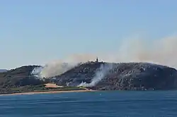 Barrenjoey is a locality in the suburb of Palm Beach, at the most northern tip of Pittwater. The headland is made up primarily of sandstones of the Newport Formation, the top third is a cap of Hawkesbury sandstone.[1] Around 10,000 years ago the headland was cut off from the mainland due to the rising sea level; subsequent buildup of a sand spit or tombolo reconnected the island to the mainland (a 'tied island'). It is the location of the Barrenjoey Head Lighthouse, a lighthouse that was first lit in 1881. In 1995 Barrenjoey was gazetted into Ku-ring-gai Chase National Park.[2]