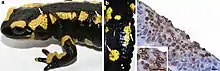 - ↑ Bletz, Molly C.; Kelly, Moira; Sabino-Pinto, Joana; Bales, Emma; Van Praet, Sarah; Bert, Wim; Boyen, Filip; Vences, Miguel; Steinfartz, Sebastian; Pasmans, Frank; Martel, An (2018). "Disruption of skin microbiota contributes to salamander disease". Proceedings of the Royal Society B: Biological Sciences. 285 (1885): 20180758. doi:10.1098/rspb.2018.0758. ISSN 0962-8452. PMC 6125908. PMID 30135150.