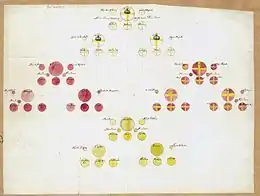 Sailing order for the Swedish fleet in late 1675. The illustration shows that the Swedish navy had not adapted to the realities of the line of battle. It still followed the patterns of "melee tactics" where small groups of ships acted individually, aiming for close combat and boarding.[7]