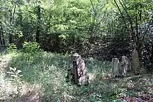 Stone markers on the edge of the forested, overgrown battlefield, indicating the place where the Nedić brothers and comrades met their deaths