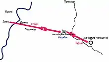 The Battle of Čokešina (Serbian Cyrillic: Битка код Чокешине), also referred to as the "Serbian Thermopylae", was a battle fought on Lazar's Saturday, 28 April 1804, between the Serbian insurgent army under the command of the Nedić brothers and forces of the Ottoman Empire. It took place near the Monastery of Čokešina, not far from Loznica. The battle is known as the Serbian Thermopylae because the Serbian army numbered 303 hajduks were outnumbered fifteen to one, according to historians.[1] The small Serbian force were eventually defeated after a day of fierce fighting; the death of all the insurgents resulted from the battle. Its aim of preventing the siege of the Ottomans at Šabac being broken by relieving Bosnian–Ottoman troops was nevertheless achieved.
