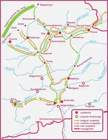 With his characteristic steadfastness and speed, Bem cut the imperial front in two on 23 December near Dés, first driving Colonel Karl von Urban's border guard regiments into Bukovina and then turning south to win a decisive victory over Lieutenant General Anton Puchner, the main commander of the Austrian armies from Transylvania.[4] In January 1849, the Honvéd Army liberated Székely Land, and then defeated Puchner, who was in an increasingly desperate situation, near Szőkefalva.[4] The imperial commander-in-chief was forced back to his headquarters in Nagyszeben, but Bem tried unsuccessfully to take the city on 21 January in the First Battle of Nagyszeben. This was Bem's first defeat in Transylvania.[4] After his victory at Nagyszeben, Puchner launched an attack, but Bem defeated him in the Battle of Szelindek on 24 January, and forced him to retreat back to where he came from.[1] After this successful battle, Bem sent Major Farkas Kemény with the 11th and 55th Battalions, 1 company of the Mátyás Hussars and a six-pounder battery to Déva via Vízakna-Szerdahely-Szászsebes and Szászváros, to wait there for the relief troops sent from Hungary then return in quick marches, or to wait at Déva for Bem along the Transylvanian-Hungarian border in the case if he was forced to retreat by Puchner.