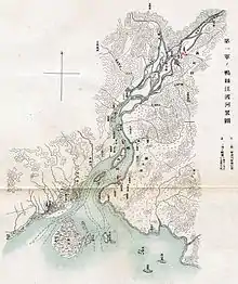 The Battle of the Yalu River (Amnok River) lasted from April 30 to May 1, 1904 and was the first major land battle during the Russo-Japanese War. It was fought near Wiju (modern village of Sinuiju, North Korea) on the lower reaches of the Yalu River, on the border between Korea and China. Also known as the Yalu River Crossing Operation.[2]