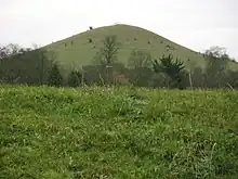 Beacon Hill is named after a nearby hill in the Ivinghoe Hills range and shares the same name. It was surveyed at the order of the Duke of Bridgewater and was discovered to be 827 feet (252 m) high.[3] The hill has a Bronze Age bowl barrow at the top and used to have a beacon on the top of it, with the iron lighter for it being stored in the nearby Church of England Church of St Peter and St Paul, Ellesborough.[3] The beacon was replaced in the 19th century with a flagpole, which was then exchanged for a gun emplacement during the Second World War.[4] It is a part of a National Trust trail which gives walkers views of Chequers, the country house of the Prime Minister of the United Kingdom.[5]