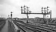 The station was rebuilt in the early 1930s to enable the line to be four-tracked. The ornate buildings were demolished, and were replaced by more austere buildings on two island platforms between the tracks, including two waiting rooms, ticket and parcel offices. The new station was completed on 30 April 1932 and was accessed, as now, by a subway from Fraser Street. The station employed 15 men in 1938. There was a 74 lever signal box to the east of the northern platform, and also a small siding to serve local coal merchants.[10]