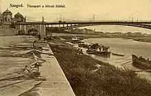 The Belvárosi Bridge in Szeged, Hungary, is the main bridge of the city, connecting Újszeged, on the left bank of the river Tisza, to the other quarters. It was the only crossing on the river in the County until the finishing of the Bertalan Bridge in 1979. Every year in May the Hídivásár (Bridgemarket) is held there, drawing thousands of visitors to the city.