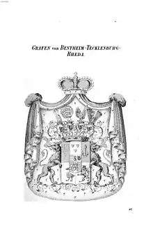 Coat of arms of the Counts of Bentheim Tecklenburg-Rheda, Tyroff: Wappenbuch des höheren Adels der deutschen Bundesstaaten, 1846–1865