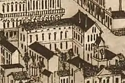 The Lamar House Hotel was built by Irish immigrant Thomas Humes (17671816) and his descendants, and quickly developed into a gathering place for Knoxville's wealthy. In 1819, Andrew Jackson became the first of five presidents to lodge at the hotel, and in the early 1850s, local businessmen purchased and expanded the building into a lavish 75-room complex.[2] During the Civil War, the Union Army used the hotel as a hospital for its war wounded, among them General William P. Sanders, who died at the hotel in 1863. Following the war, the hotel became the center of Knoxville's Gilded Age extravagance, hosting lavish masquerade balls for the city's elite.[2][3]