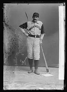 Joyce became a leading slugger for the next several seasons; between 1894 and 1898, he led the majors in home runs (60), was fifth in slugging percentage (.497), and seventh in on-base percentage (.444).[4] He tied for the National League lead in home runs in 1896 (with Ed Delahanty) while playing for Washington and New York, and finished second three other times. He holds the record with four triples in one game, which he accomplished in 1897 (tying George Strief's 1885 record).[5] Joyce served as player-manager with New York.