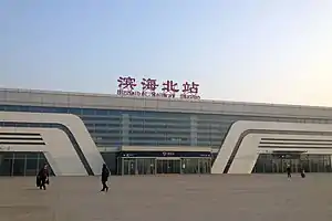 Binhai North railway station (simplified Chinese: 滨海北站; traditional Chinese: 濱海北站; pinyin: Bīnhǎiběi Zhàn) is a railway station on the Tianjin–Qinhuangdao high-speed railway in Binhai New Area, Tianjin.