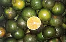 In 1927, Catholic missionary from Netherlands named Father Bergh first introduced lime to Bintangor. Ling Ming Lok was the first person who successfully cultivated the lime near the Rajang river.[1][note 21] Mass production of lime with unique taste has earned the town the nickname "lime town" (桔子城).[1][note 22] There was once a factory in Bintangor which produced the "Green Mountain" brand of lime beverages, but with the competition from the outside branded soft-drink manufacturers, the factory was closed down.[3] Rice mills and sago mills operations were the main economic activities at that time.[6]