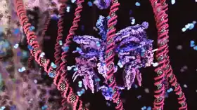 The other apps work like more conventional video games.[65] In the app for "Virus" the user shall protect a cell from the attack of various bacteria that try to infect it, as the song plays in the background.[71] But if the player prevents the infection, the song plays in a loop, so the user must lose the game in order to make the song continue.[72] The instrument mode in the "Virus" app let the player use the Cell nucleus and the bacteria as percussion by tapping and jolting them.[66] In "Dark Matter", the actual song plays in part until it stops and the user must mimic the pattern of lighting of some orbs to continue in the song,[73] while in the instrument mode the orbs let the user play different scales.[66][73] The "Mutual Core" app features a video game in which the player arranges geological layers in the same way as an accordion[74] to play chords.[74][75] During the verses, the player tries to unite the hemispheres, because the energy keeps them apart[66] while during the chorus the app shifts to a cutaway of a planet, and the player can touch the layers of the planet's interior to open it up and touch the core.[66][74] The player may also change the resistance of the chords to increase the difficulty.[74] "Crystalline" features a video game in which the player, in the form of a crystal, travels through different tunnels, depending on where the player tilts their device, with each tunnel corresponding to a part of the song.[66] The player may decide to repeat the same part of the song endless times if he goes through the same tunnel.[76] As the crystal travels through the pipes, the player can catch other crystals scattered around, resulting in the opening of new tunnels and paths, and in the end the resulting crystalline formation can be saved as a picture.[76] The "Hollow" presents a video depiction of the body interior, starting from the blood tissue descending into showing the DNA and the replisome.[66][77] The "Hollow" instrument let the user tap different enzymes depicted in the background to play time signatures and build a drum machine.[75][77]